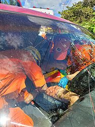 A motorista ficou presa às ferragens do carro, um Celta de cor vermelha, e foi preciso acionar o Corpo de Bombeiros para o resgate. Quatro militares foram encaminhados ao local e fizeram o resgate da mulher.