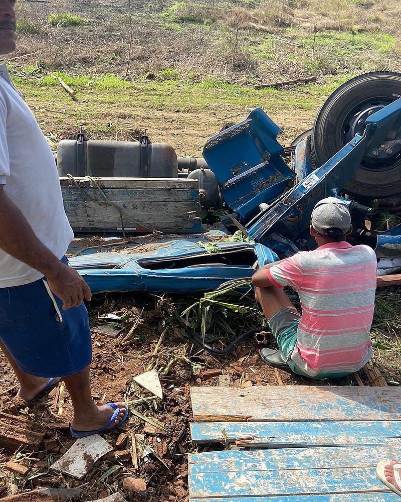 O caminhão estava carregado de madeira e a carga ficou espalhada depois do tombamento. O veículo destruído chamou a atenção de curiosos que acompanharam o trabalho de resgate do sobrevivente.
