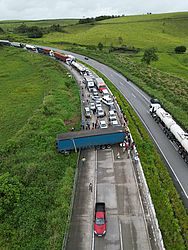 Um trecho da BR-101, em Messias, na região metropolitana de Maceió, ficou interditado após uma carreta ficar atravessada em uma das pistas e bloquear o trânsito, no começo da tarde desta quarta-feira (10).