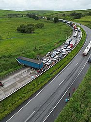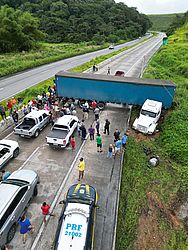 De acordo com informações de testemunhas, o acidente aconteceu após o condutor da carreta perder o controle da direção. O veículo deslizou sobre a pista e ficou atravessado no quilômetro 67 da rodovia, no sentido Joaquim Gomes.