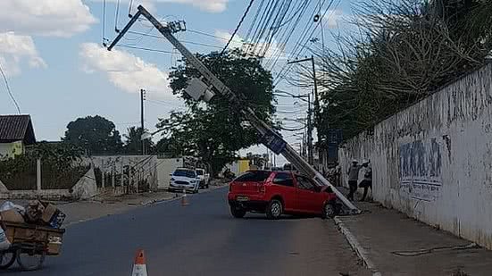 A Equatorial foi acionada para evitar outro acidente e suspender o poste, que não caiu porque ficou apoiado no carro. A energia ficou desligada até a conclusão do procedimento.