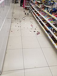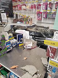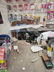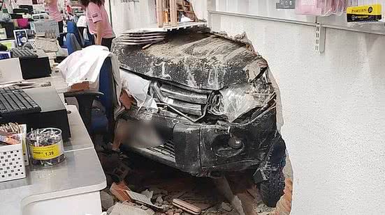 Imagens compartilhadas com a redação do TNH1 mostram que a parte do para-choque ficou dentro da loja, já que a colisão foi frontal. Também foi possível observar que o buraco no muro era próximo de um dos caixas, porém não há informações se ele estava ocupado no momento da batida.