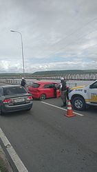 Duas pessoas ficaram feridas após um carro colidir contra a ponte Divaldo Suruagy, na AL-101, em Marechal Deodoro, neste domingo (03).
