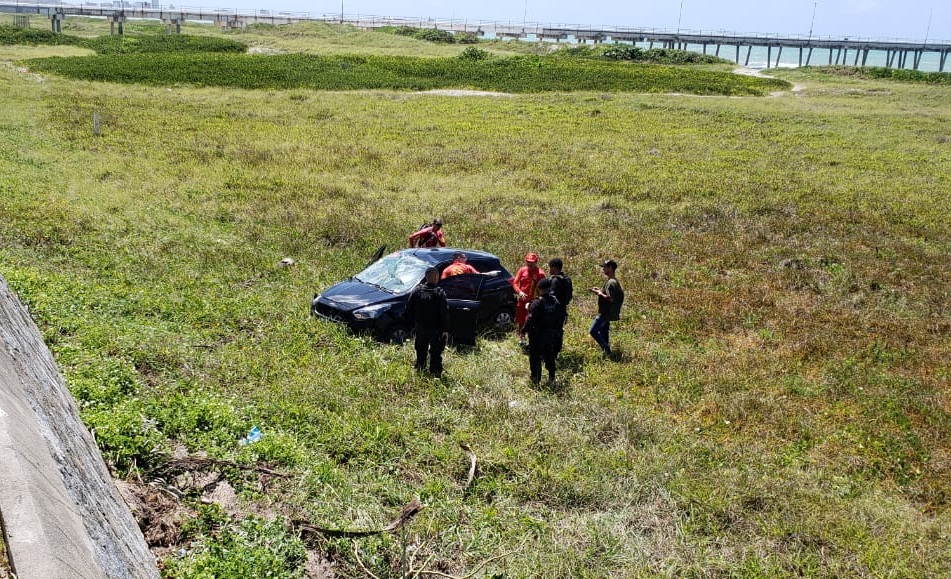 Um veículo capotou em frente ao grupamento do Bope, no Sobral, parte baixa de Maceió, quando vinha no sentido de Marechal Deodoro para Maceió, na Avenida Assis Chateaubriand.