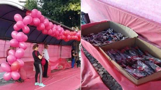 A gente sabe que as mulheres merecem muito mais, sobretudo, respeito, e o ano inteiro, não é mesmo, rapazes? Mas isso não tira a delicadeza de Roberto, que, neste ano, decorou o ponto de ônibus da Praça Ludovico Teixeira com um tapete, balões e panos cor de rosa.