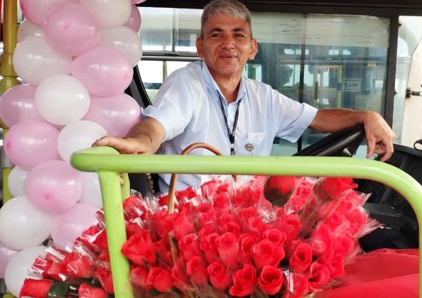 No ano passado, ele decorou o ônibus que dirige pelas ruas de Goiânia (GO) com balões de coração e distribui rosas para as passageiras.