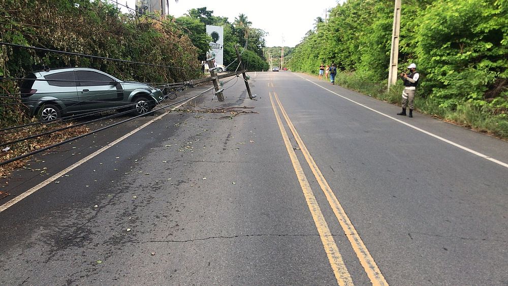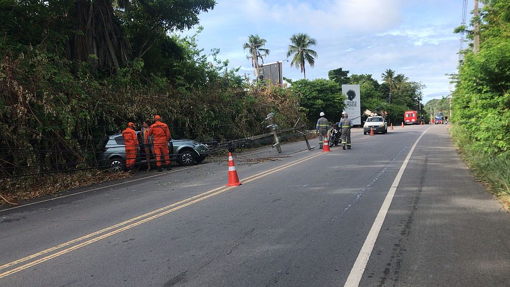 Além do BPRv e da Equatorial, o Corpo de Bombeiros também esteve no local para retirar a condutora que havia ficado presa dentro do carro.