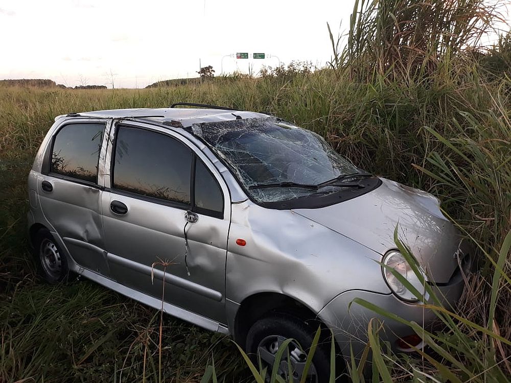 Para desviar do bicho, ela tentou levar o automóvel para a sua direita, quando perdeu a direção e invadiu o canteiro. Como acelerava o veículo e estava na área de mata, o carro capotou.