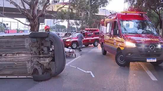 Uma motorista perdeu o controle do veículo, bateu e capotou ao tentar desviar de um corpo caído na pista expressa da Marginal Tietê, sentido Ayrton Senna, na manhã desta quinta-feira (12). Ela foi socorrida pelos bombeiros e levada a um hospital particular da região.