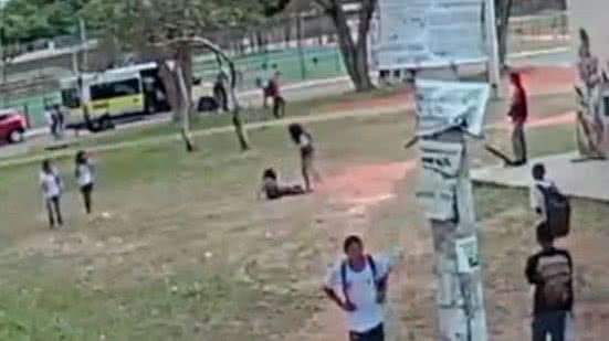 Uma criança, de 11 anos, foi agredida com um puxão de cabelo e um soco, na segunda-feira (16), por volta das 12h30, em frente ao Centro de Ensino Fundamental 4 de Planaltina, no Distrito Federal. Câmeras de segurança da escola pública registraram o momento em que uma mulher correu atrás da estudante, derrubou a menina no chão, bateu nela e, depois, foi embora, caminhando tranquilamente.