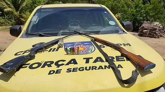 A Polícia Militar apreendeu duas espingardas e munições dentro de uma casa no Povoado Jubileu, na zona rural de São Miguel dos Milagres, município do Litoral Norte alagoano, nesse domingo (12). Os militares chegaram ao imóvel após denúncia da própria moradora. Ela se apresentou como vítima de violência doméstica e entregou as armas do companheiro. O suspeito não foi localizado.