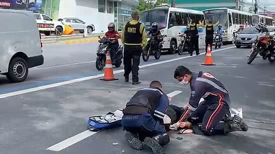A mulher foi estabilizada e levada até o hospital, e a SMTT retirou os cones para que os condutores tivessem todas as faixas disponíveis para a viagem. O motociclista, envolvido no atropelamento, permaneceu no local e deu assistência à vítima.