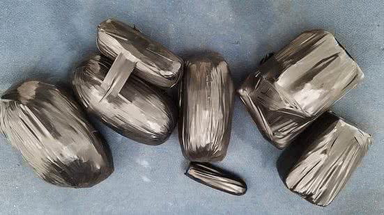 Os pacotes com a droga, armazenados em sacolas plásticas, estavam presos ao corpo da mulher.