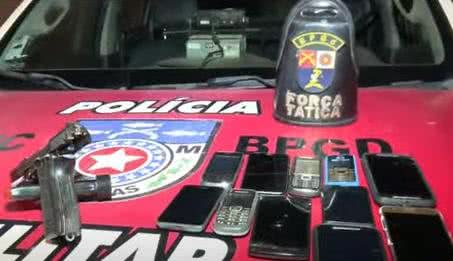 Além da arma, de calibre .40, 11 celulares foram encontrados numa mala dentro de um guarda-roupa, sem documentos que comprovassem a propriedade dos aparelhos.