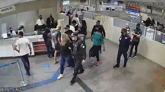 Em outro momento, policiais se aproximam da mulher em uma sala de espera para atendimento. Depois de cerca de 30 minutos, ela é abordada pelos agentes. Após nova discussão, ela é imobilizada. Na sequência, a mulher é levada para uma viatura da Polícia Militar por cinco pessoas com uniformes de agentes de segurança.