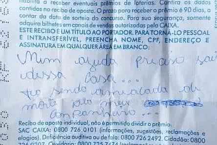 Uma mulher mantida em cárcere privado foi resgatada após pedir ajuda a vizinhos usando um bilhete de loteria. No papel, a vítima escreveu: "Me ajude, preciso sair dessa casa, estou sendo ameaçada de morte pelo meu companheiro, me ajuda".