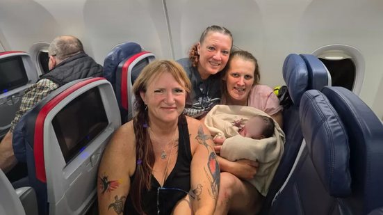 Duas técnicas de emergência médica, Tina Fritz e Kaarin Powell, atenderam a grávida após serem chamadas pela tripulação. As duas voltavam de férias na República Dominicana e já tinham ajudado outra passageira com um problema de saúde no mesmo voo.