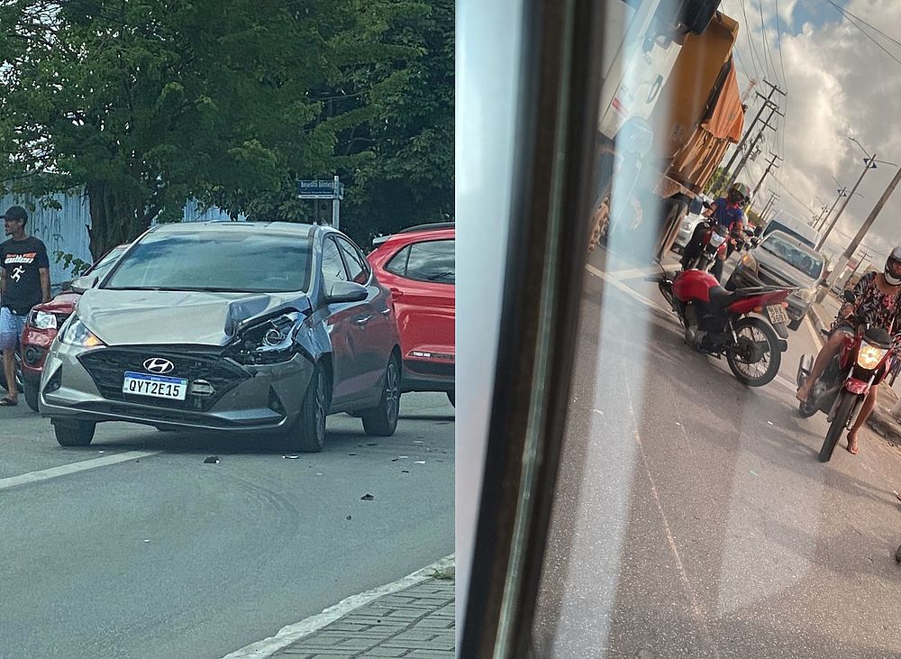 O carro de modelo Hyundai, de cor cinza, ficou com parte da frente danificada após o impacto da batida. Não houve informações sobre o motorista.