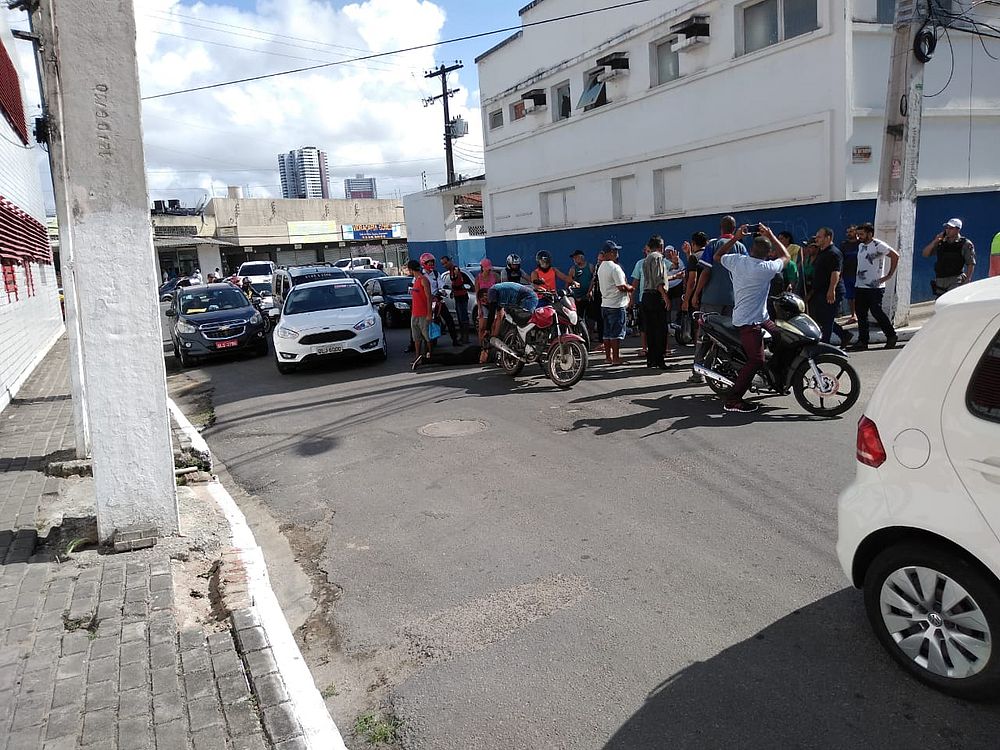 Um acidente entre um caminhão e uma motocicleta deixou uma mulher ferida num trecho da Rua Cincinato Pinto, próximo ao Palácio República dos Palmares, no bairro do Centro, em Maceió.