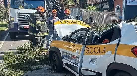 Outra vítima dos ventos é uma mulher de 24 anos que estava dentro de um carro de autoescola atingido pela queda de uma árvore em São José dos Campos, no Vale do Paraíba.