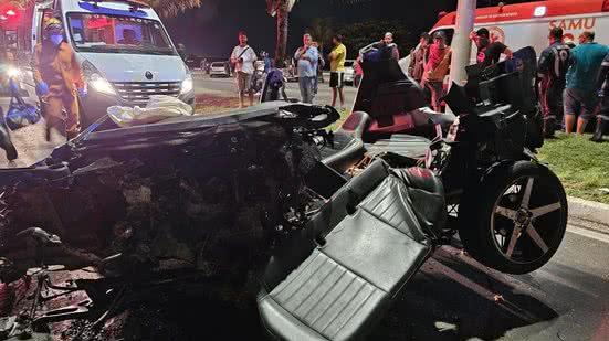 Em imagens enviadas ao TNH1, é possível ver que o carro ficou destruído após o impacto com o coqueiro. Uma das portas se desprendeu do veículo e foi parar do outro lado da pista. Além disso, em um dos vídeos, também pôde ser observado que o motor foi arremessado do automóvel. Veja o vídeo:
