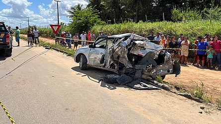 A Polícia Rodoviária Federal (PRF) esteve no local e confirmou que todos as vítimas estavam estavam no interior do veículo Voyage. Até o momento, o condutor da caminhonete não foi localizado.
