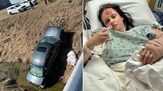 O acidente também deixou a americana com ferimentos graves nas pernas e presa sob o volante, impedindo-a de sair do carro em segurança, informou a CNN.