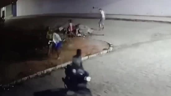 Durante a fuga da dupla, uma mulher, que estava com a vítima e conseguiu se afastar e tentou arremessar uma pedra neles. Veja o vídeo: