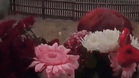 Uma câmera instalada na campainha da casa registrou o momento em que a agressora chegou ao local, com o buquê e o disfarce.