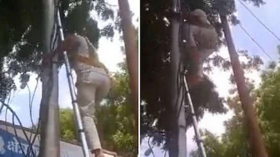 Mohd apelou aos policiais que o pararam dizendo ter um salário de 5 mil rúpias (R$ 316), o que tornava muito dura a multa, de 6 mil rúpias (R$ 380). Ele pediu que a multa fosse ignorada, prometendo nunca mais esquecer o capacete. Ignorado no apelo, o eletricista subiu num poste e deixou a DP às escuras, na última terça-feira (23/8).