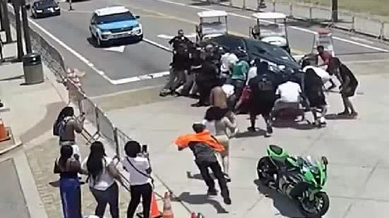 Um motociclista foi atropelado por um carro em alta velocidade e ficou preso embaixo do veículo. As testemunhas do local rapidamente se reuniram e levantaram o carro para resgatar o homem. O episódio aconteceu no sábado (28), em Myrtle Beach, na Carolina do Sul (EUA).