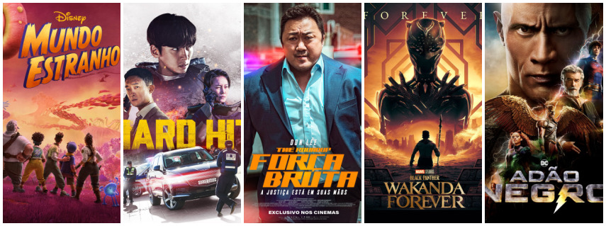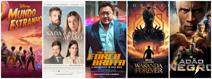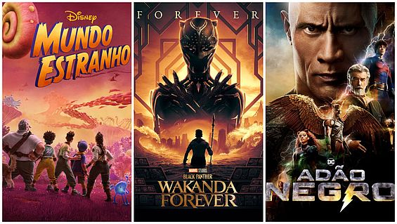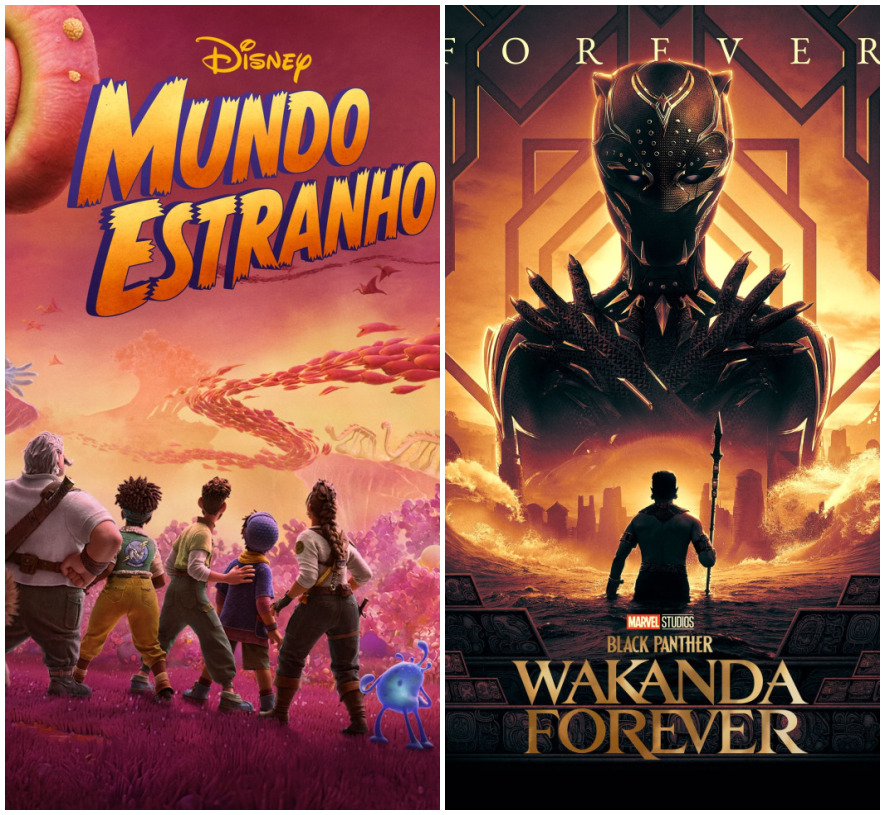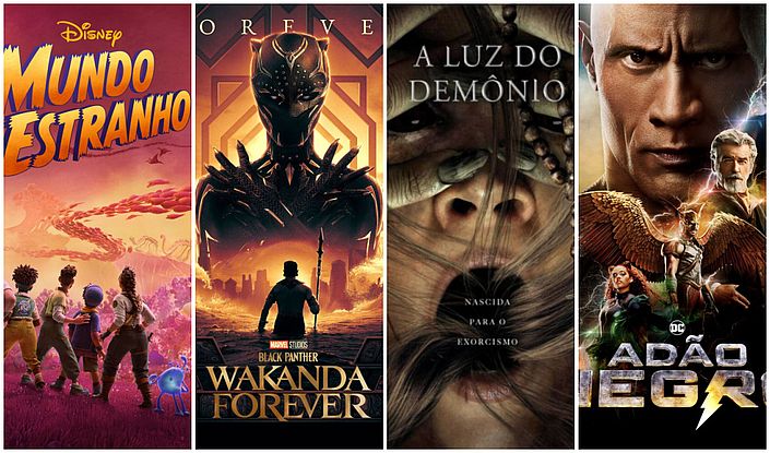 Na parte alta da cidade, ‘Mundo Estranho’, primeira animação da Disney com protagonista gay, estreia com destaque. ‘Pantera Negra: Wakanda Para Sempre’, ‘A Luz do Demônio’ e ‘Adão Negro’ ainda continuam em exibição.