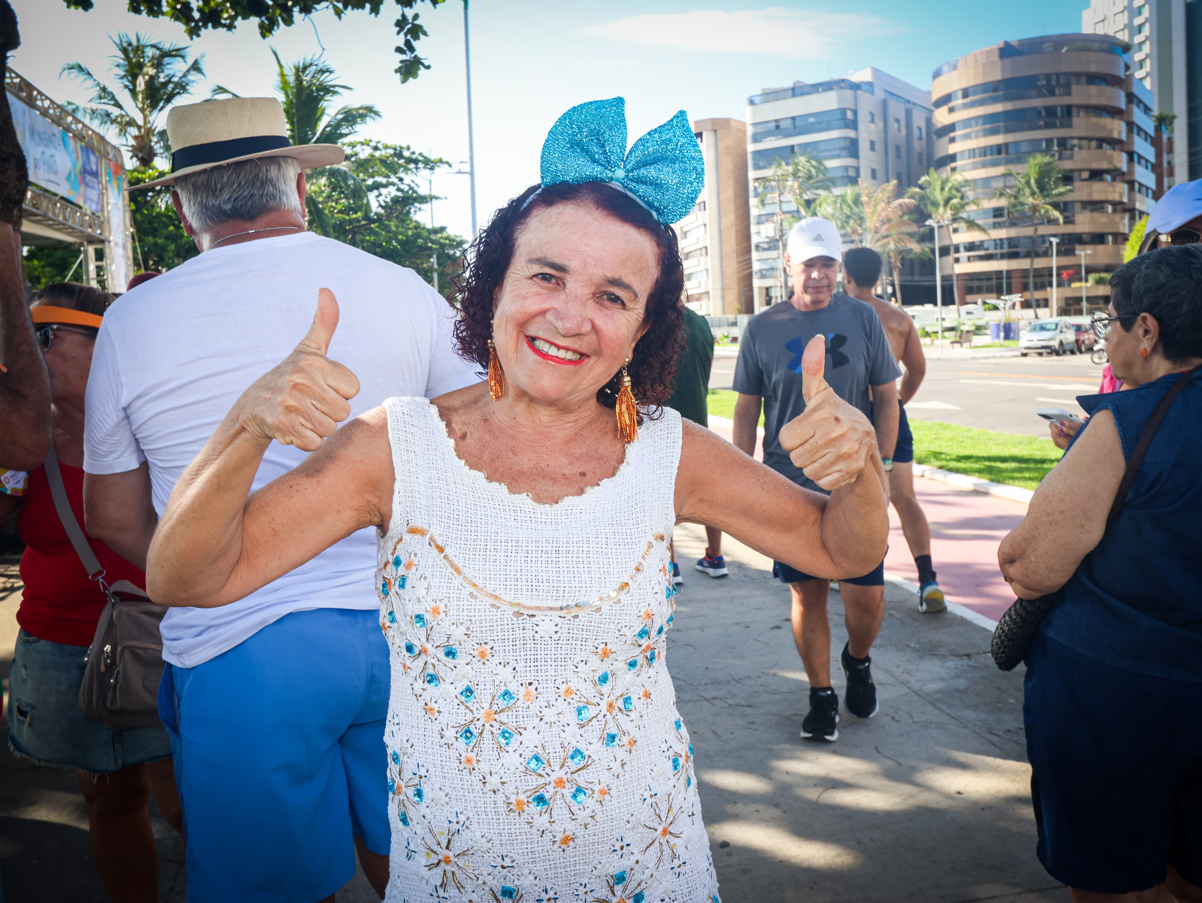 A pernambucana Lurdes Assis, de 67 anos, participa do Mungunzá do Pinto desde quando o bloco surgiu. Amante do frevo, ela revelou à reportagem do TNH1 que fica ansiosa para cair na folia.