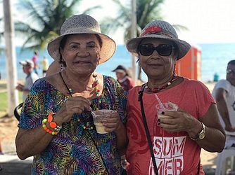 Crianças, adultos e idosos se reuniram bem cedinho na beira-mar para curtir o frevo regado a muita alegria e munguzá, prato tradicional da culinária nordestina e que tem o milho, alimento que remete ao Pinto.