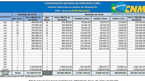 Confira aqui a lista de coeficientes dos municípios alagoanos.