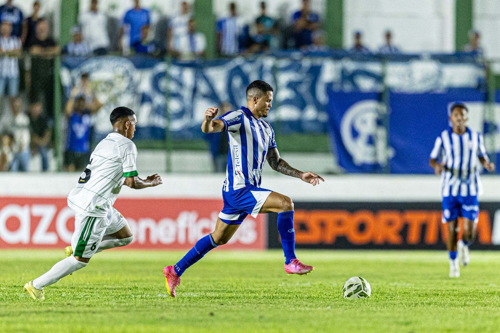 A primeira chegada do Azulão surgiu ainda antes do primeiro minuto: Samuel limpou a jogada e chutou, mas a bola passou ao lado direito do gol. Depois, a equipe passou a arriscar de fora da área, com investidas de Matheus Melo e Ramon, mas sem perigo efetivo.