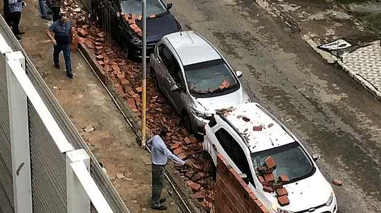 Um muro em construção localizado no entorno do Fórum Desembargador Jairon Maia Fernandes, no Barro Duro, desabou na tarde desta quinta-feira (13), atingindo três veículos que estavam estacionados no local.