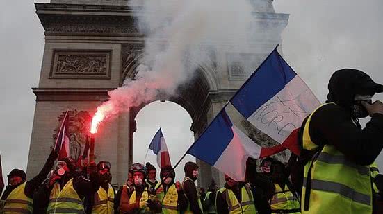 Em meio à onda de protestos dos "coletes amarelos" na França, neste sábado (1º), manifestantes fizeram uma série de pichações no Arco do Triunfo, um dos monumentos mais visitados de Paris -entre as quais, a inscrição "os coletes amarelos irão triunfar".
