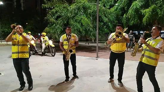 Quatro agentes desfilaram pelas ruas da região tocando instrumentos musicais, como saxofone, trompete e trombone. As imagens foram registradas no perfil da Ronda do Bairro no Instagram e por diversos maceioenses que filmaram da sacada dos prédios.