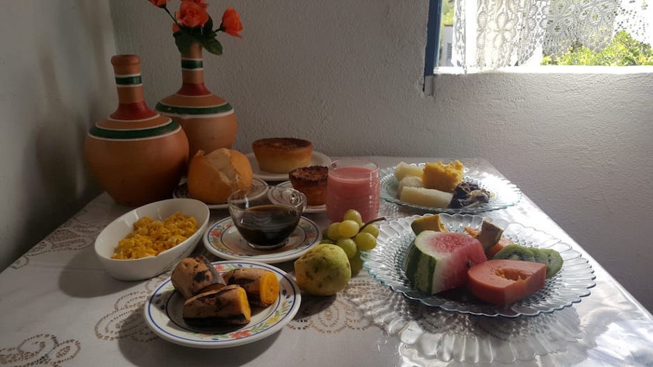 Mesa farta – O café da manhã, de todos os que eu já conheci na cidade, é o melhor porque segue a mesma filosofia de prestigiar os produtores da região, os queijos, manteigas e requeijão são todos artesanais, oriundos da Casa do Leite, bem como os ovos caipira. Os produtos são tão bons, que os hóspedes viram fregueses da Casa do Leite. Além dessas maravilhas, o cuscuz e a macaxeira são notas 10.