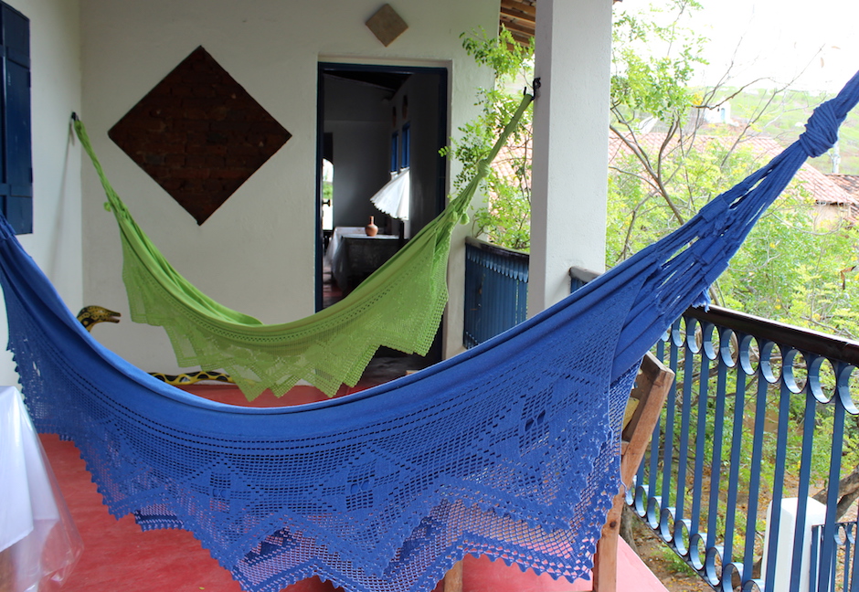 Minha casa – Gosto de lugares com este, do casal Álvaro e Suely. Digo que a pousada tem alma, desde que cheguei lá me senti em casa, ou melhor na casa dos meus sonhos. Sobrado antigo com corredor, quartos, redes, um pedacinho de terra, e das janelas avista-se os telhados e as torres da Igreja.