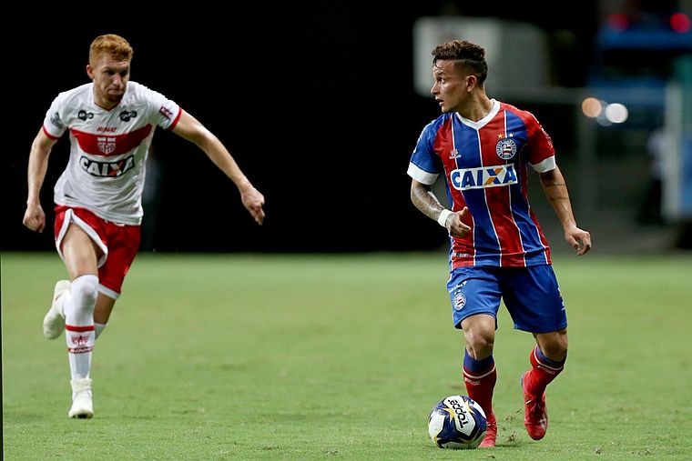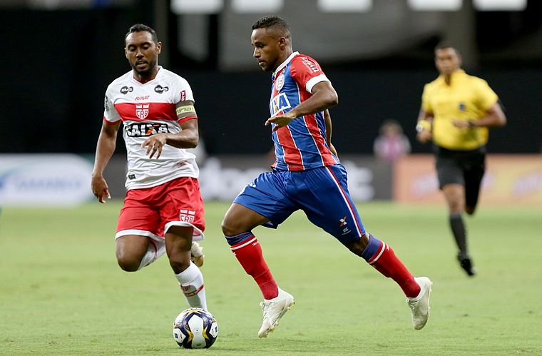 Roberto Fernandes surpreendeu na escalação e iniciou o jogo sem centroavante. A primeira chegada surgiu em finalização perigosa de Gregore, que assustou Edson Mardden. Em poucos minutos de bola rolando, o CRB abriu o placar. Em escanteio pela esquerda, a defensiva baiana furou no corte na primeira trave, a bola sobrou limpa, Mateus Silva não perdoou e anotou o primeiro gol dele com a camisa regatiana. Mas o Tricolor não deixou nem o Galo comemorar. Dois minutos depois, Gilberto aproveitou cruzamento de Paulinho, apareceu nas costas de Edson Henrique e cabeceou certeiro, empatando a partida.