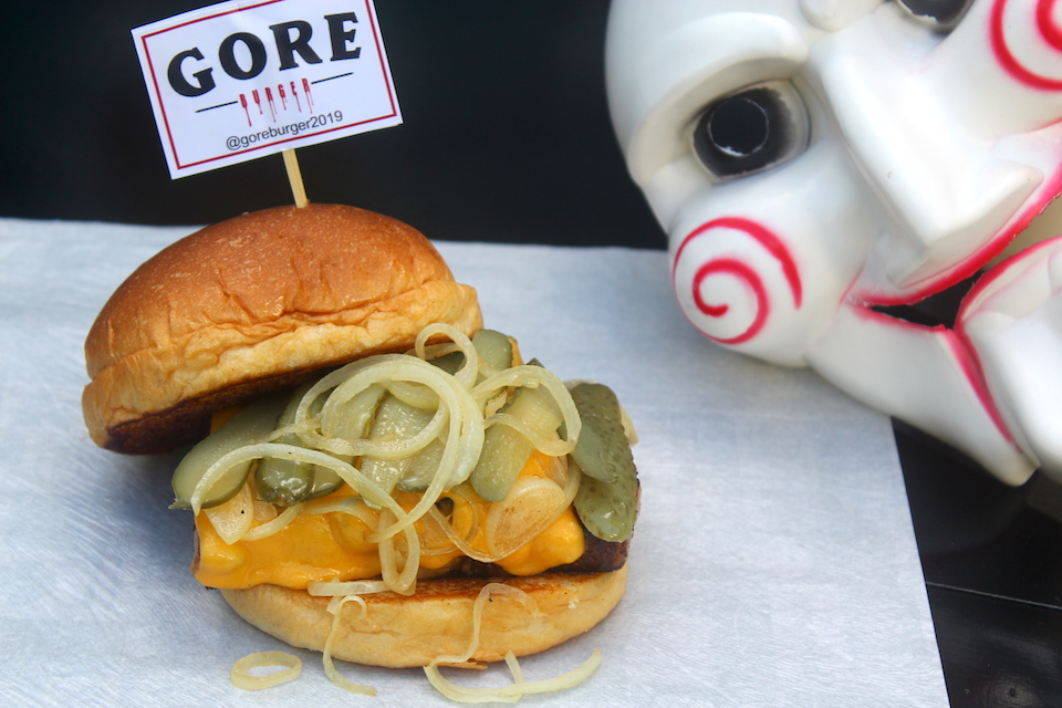 Gore Burger: Os hambúrgueres artesanais na brasa do chef Jaino Lins, todos batizados com nomes de filmes de terror, como Halloween, Iluminado, Massacre da Serra Elétrica, Laranja Mecânica…