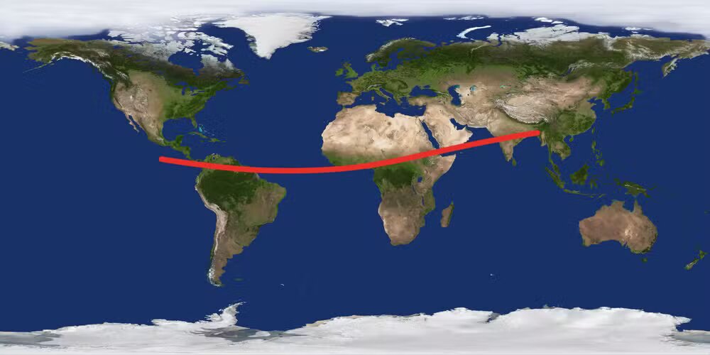 Cientistas do Catalina Sky Survey Project, projeto financiado pela NASA, identificaram o possível "corredor de risco" do asteroide 2024 YR4, que pode atingir a Terra em 22 de dezembro de 2032. A trajetória abrange uma faixa estreita do norte da América do Sul até a Ásia, incluindo regiões densamente povoadas como Chennai, na Índia, e a Ilha de Hainan, na China. A chance de impacto é estimada em 2,1%. As informações são do Daily Mail.