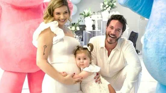 O casal anunciou a gravidez durante café da manhã com Ana Maria Braga no “Mais Você”, em 29 de abril deste ano. “Chega em novembro. A gente está com 12 semanas”, contou Viih, à época.