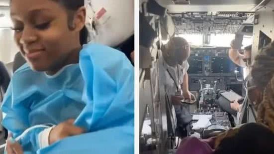 Após pedir ajuda, funcionários da companhia aérea American Airlines a levaram para uma área mais reservada e, em seguida, o piloto perguntou se havia profissionais de saúde a bordo.