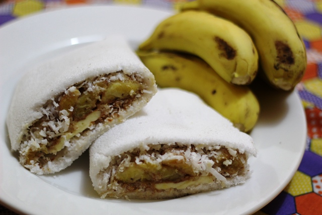 Uma tapioca de carne de sol e uma tapioca de banana.
