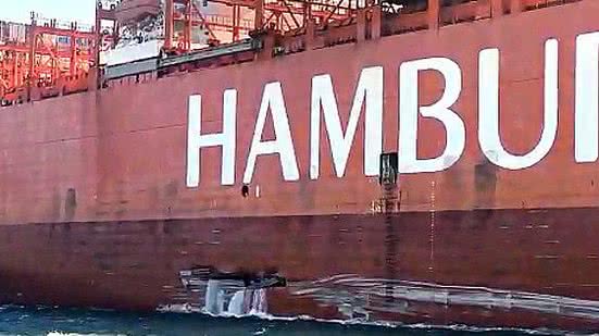Imagens divulgadas em redes sociais mostram o navio, chamado Cap San Antonio, batendo em um dique após a estação. Um rasgo no casco da embarcação foi aberto.