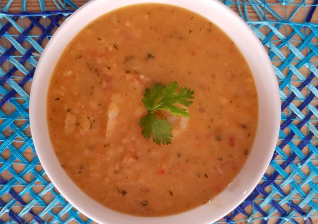O tradicional bobó de camarão preparado com macaxeira, leite de coco e bastante crustáceos