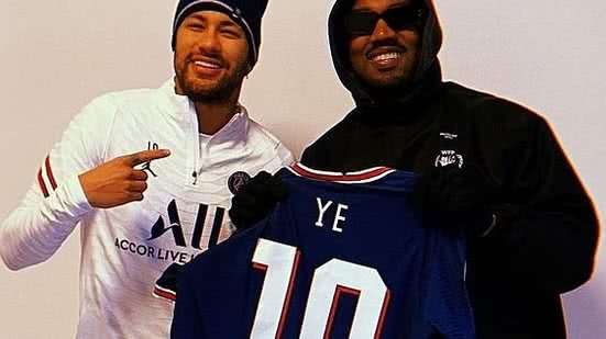 Neymar ainda presenteou Kanye com uma camiseta do PSG, feita especialmente para o cantor, com o número 10 e seu novo apelido, Ye, atrás.
